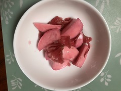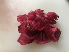 | *ローゼル (英: Roselle、学名: Hibiscus sabdariffa)は、 アオイ科フヨウ属の多年生の高さ1.5~2m に育つ亜灌木(低木)です。 日本では、冬を越せないので一年生になります。 (鉢植えにして冬は室内で管理すると毎年楽しめます) *和名はローゼルソウ、別名ロゼリ草、ローゼリ草、レモネードブッシュ、フレンチ・ソレル等です。 *茎は滑らかな表皮をもち、赤紫色、 *花はクリーム色で葉腋に単生し、短日植物で、9~10月頃に開花します。 *果実(萼と苞)は肥厚して赤く熟します。 果実(萼と苞)の肥大した部分は、酸味があって生食できる。 ジャム、ゼリー、酒、ハーブティー(ハイビスカス・ティー)、清涼飲料、塩漬け(花梅)、 又薬(利尿作用や穏やかな下剤作用などからダイエットなど様々なことに利用される)、 更に「洛神花」という生薬にもなります *ローゼルの葉は、最初葉っぱが丸くて、三つに割れ、5つ割れで手を広げたようなものが多いです。 葉は野菜(生でサラダ、天ぷら、炒め物やスープ)として食べられます。 *茎からは繊維として利用されます。 *塩漬け(花梅)は、梅干しのような物で色々と使えます、 又金時草との相性が凄く良いです。 |